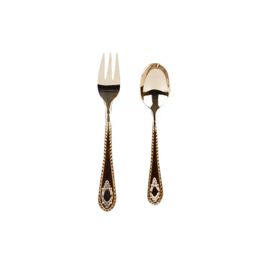 12 PCS DESSERT SPOON/FORK SET NADINE FULL GOLD (H02421)