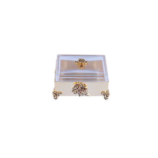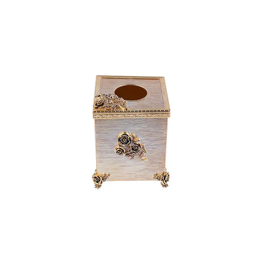 GOLD PLATED SQUARE-SHAPE TISSUE BOX" ROSE " DESIGN