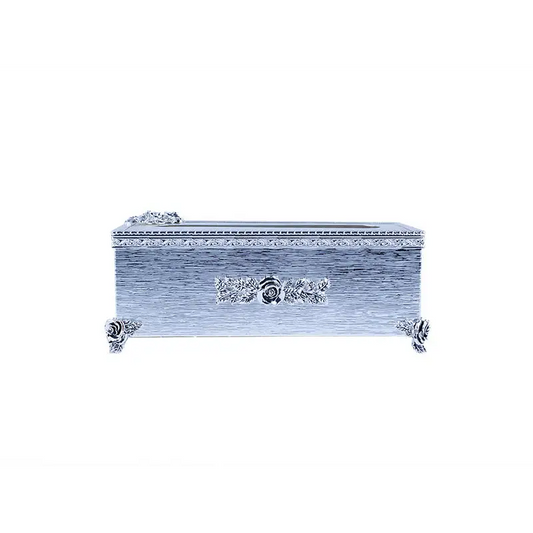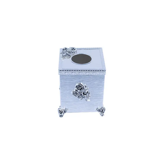 SILVER PLATED SQUARE-SHAPE TISSUE BOX" ROSE " DESIGN