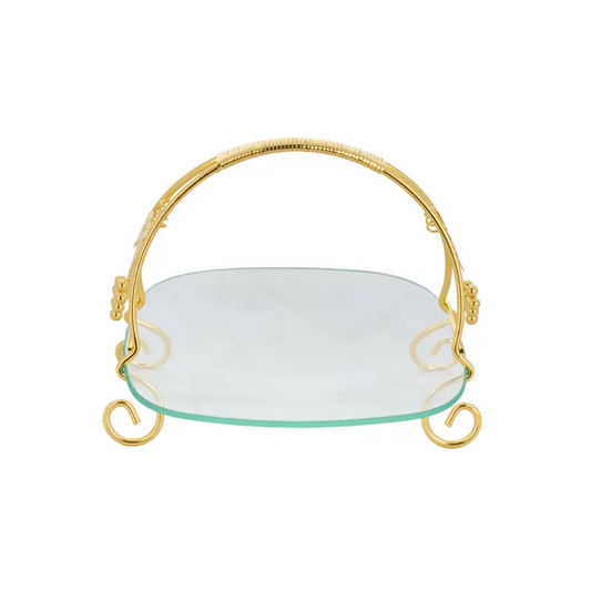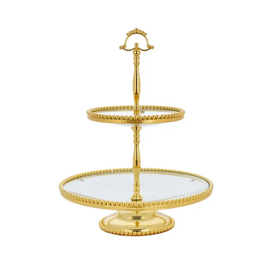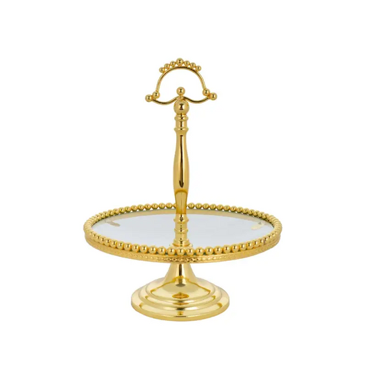 GOLD PLATED FOOTED 2TIER WITH GLASS PLATE