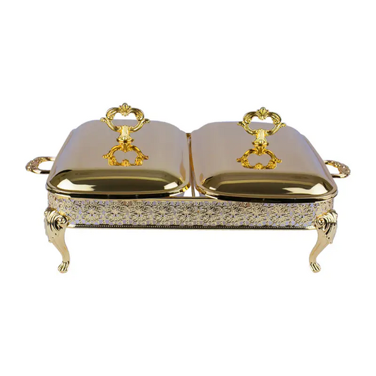 GOLD PLATED RECT FOOD WARMERS ( WITH TWO SECTION )